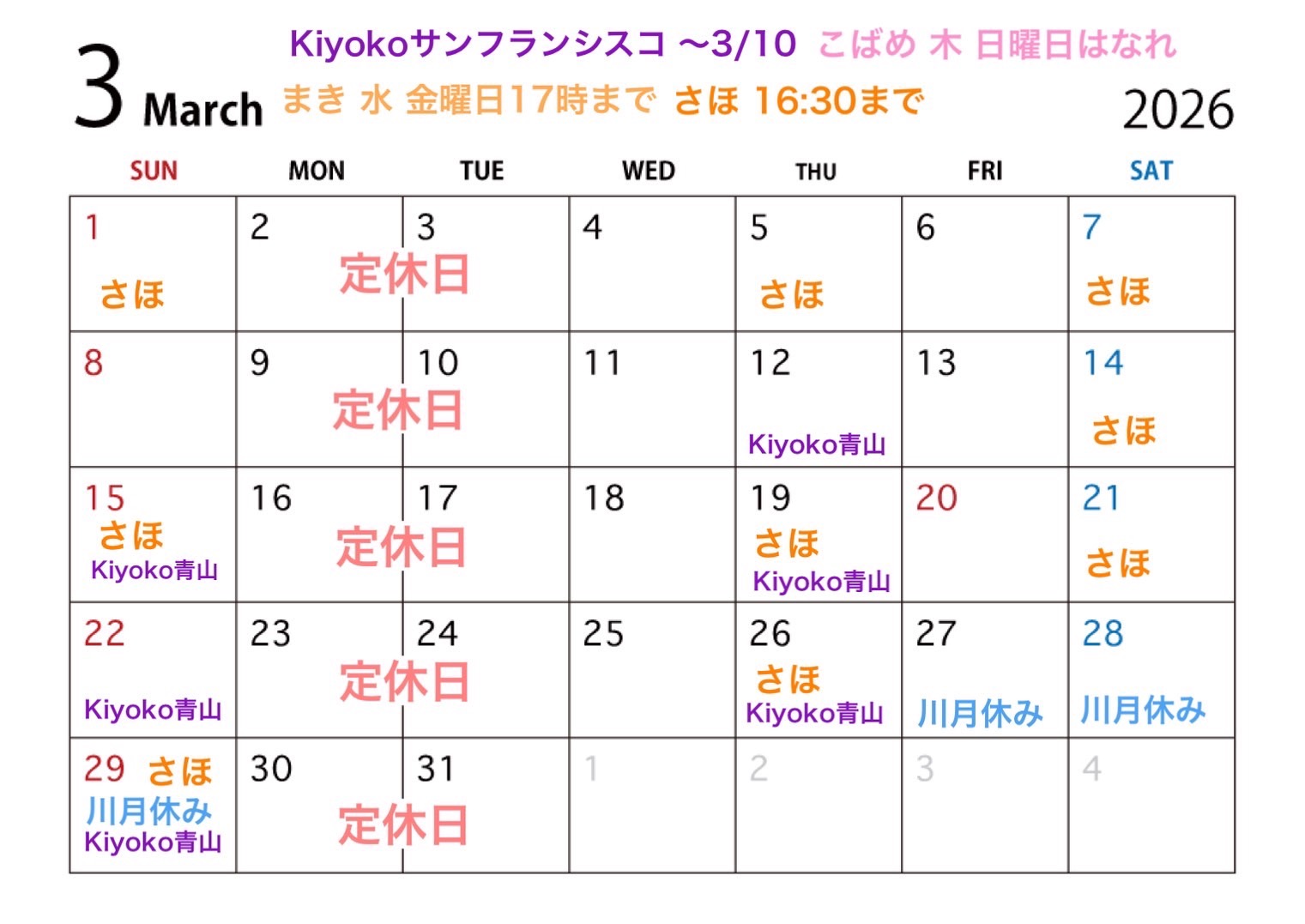 メンテナンスや春スタイルのご相談もお気軽にどうぞ✨ 松沢Kiyokoスケジュール✈️ 松沢サンフランシスコ出張の日程が決まりましたのでこちらでお知らせいたします。